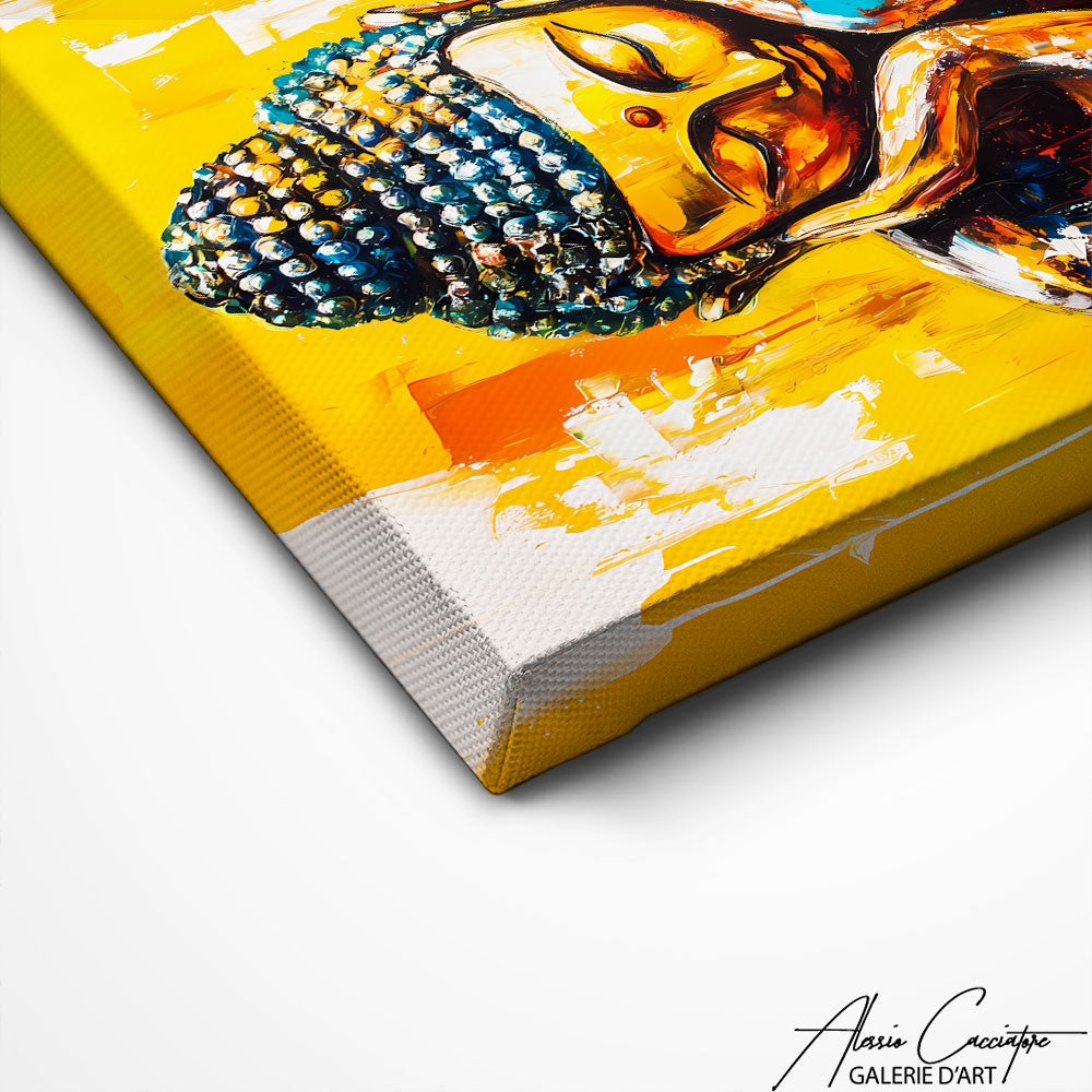 Notre tableau Bouddha capture l'essence de la paix et de la méditation avec une représentation élégante du Bouddha. Idéal pour instaurer une ambiance spirituelle et apaisante dans votre intérieur, il s'intègre harmonieusement dans un salon ou un bureau.