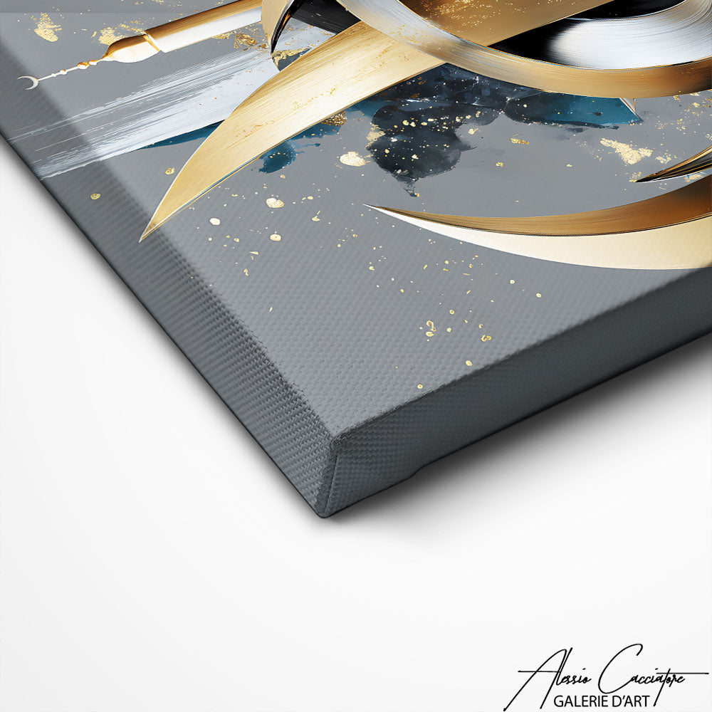 Notre tableau abstrait jaune et gris dévoile un symbole islamique avec croissant ! Cette œuvre spirituelle transforme votre décoration en galerie d'art religieux moderne. Le croissant musulman sublimé par l'abstraction contemporaine élégante. L'art religieux qui inspire spiritualité !