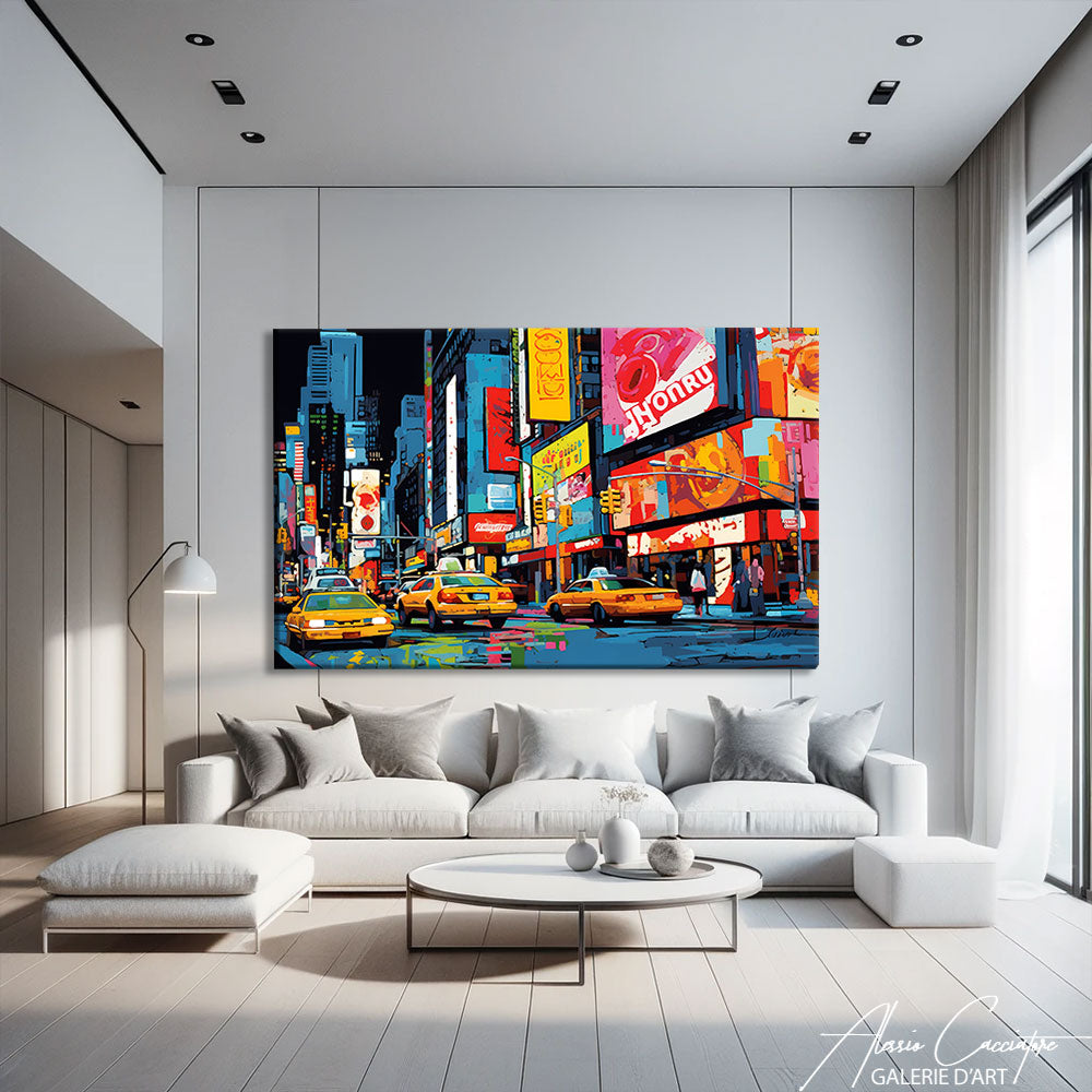 Ce tableau New York transforme tout espace en une fenêtre ouverte sur la ville. Parfait pour créer un point focal audacieux dans de grands espaces.