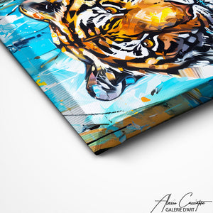 Notre tableau acrylique tigre, réalisée avec des couleurs riches, met en valeur la force et la noblesse du roi de la jungle. Une œuvre idéale pour apporter énergie et caractère à votre espace.