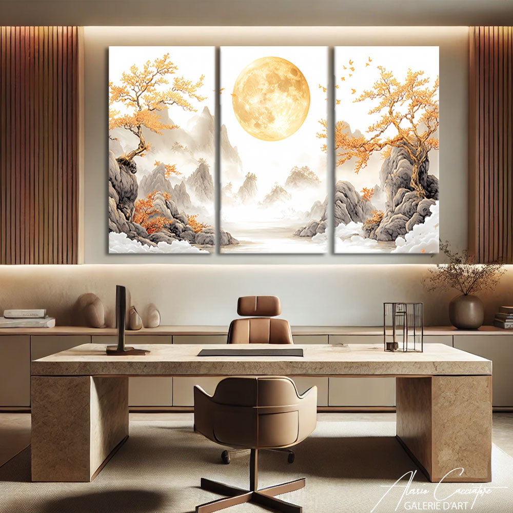 L'expression même de la pureté esthétique, notre tableau triptyque blanc joue sur les nuances subtiles et les textures pour créer une présence à la fois discrète et marquante. Sa composition équilibrée apporte légèreté et élégance à votre intérieur. Un choix raffiné qui sublime les espaces contemporains avec une sophistication minimaliste.