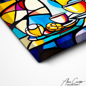 Nos toiles sont imprimées grâce à une encre spéciale resistante aux UV. Cette encre protège les couleurs au fil des années pour conserver le contraste de la peinture.