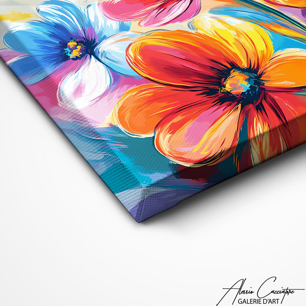 Notre tableau triptyque moderne fleur décline la beauté florale en trois panneaux avec une interprétation contemporaine saisissante. Les teintes subliment l'espace et attirent immédiatement le regard. Un parti pris artistique qui marie nature et modernité pour insuffler dynamisme et fraîcheur dans votre intérieur avec une élégance sophistiquée.