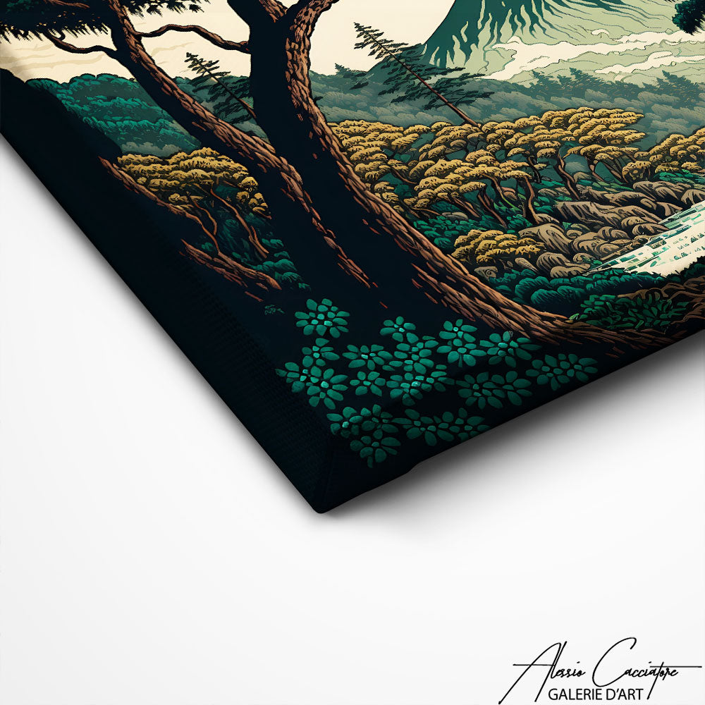 Offrant une vision panoramique de la beauté naturelle du Japon, ce tableau japonais d'un paysage transforme tout espace en un havre de paix et de tranquillité.
