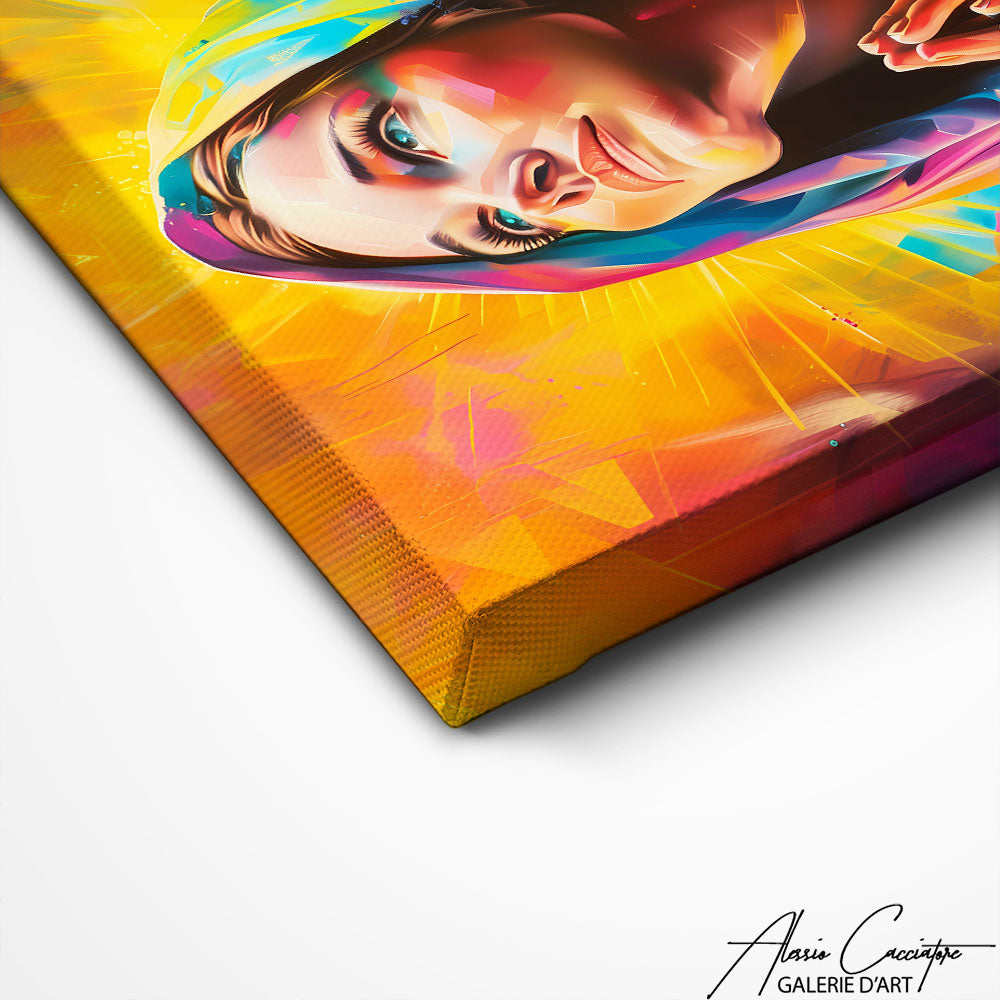 Rafraîchissant et innovant, notre tableau de la Vierge Marie moderne revisite l'image classique de Marie avec des techniques artistiques contemporaines, ajoutant une touche de modernité à la spiritualité traditionnelle.