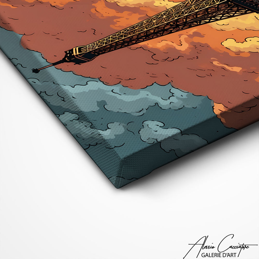 Ce tableau élégant et stylisé évoque l'atmosphère chic et cosmopolite de Paris. Ses couleurs subtiles et ses formes épurées créent une impression d'élégance raffinée, parfaite pour une maison moderne et sophistiquée.