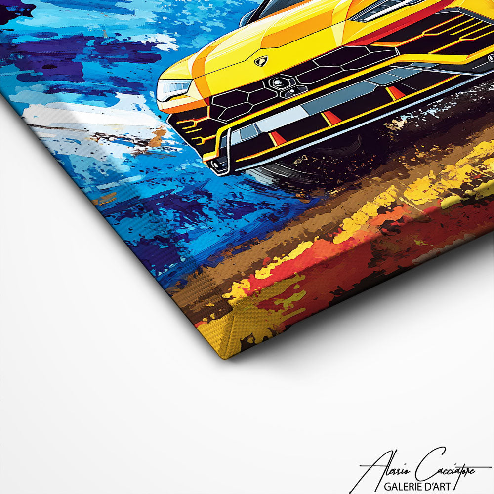 Notre tableau Lamborghini Urus met en avant la sophistication et la robustesse du célèbre SUV de la marque. Idéal pour un espace moderne, il illustre la combinaison parfaite entre luxe et performance.