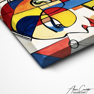 Our abstract geometric painting reveals a cubist woman! This modern work transforms your space into a contemporary geometric art gallery. Feminine cubism enhanced by bold, modern abstraction. Geometric art that fascinates!