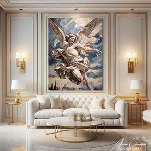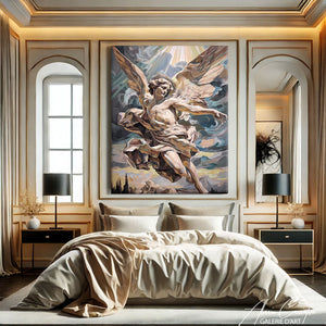 Notre tableau ange homme représente un ange déchu dans un style abstrait moderne. Profond et expressif, il dégage intensité et mystère. Une œuvre parfaite pour une décoration contemporaine.