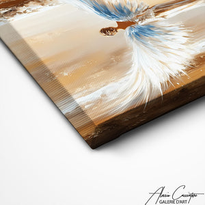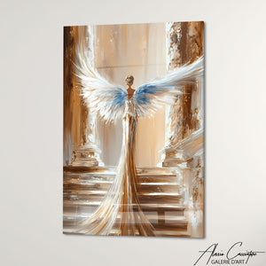 Notre tableau ange protecteur met en avant une femme vue de dos, ailes majestueuses déployées. Chic et élégant, il incarne grâce et puissance. Parfait pour un intérieur raffiné.