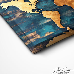 Our canvas world map combines artistic elegance and geographical precision. Placed in a dining room or workspace, it becomes a focal point that inspires conversations and dreams of distant travels. Its harmonious hues adapt to all decorative styles, from modern to classic.