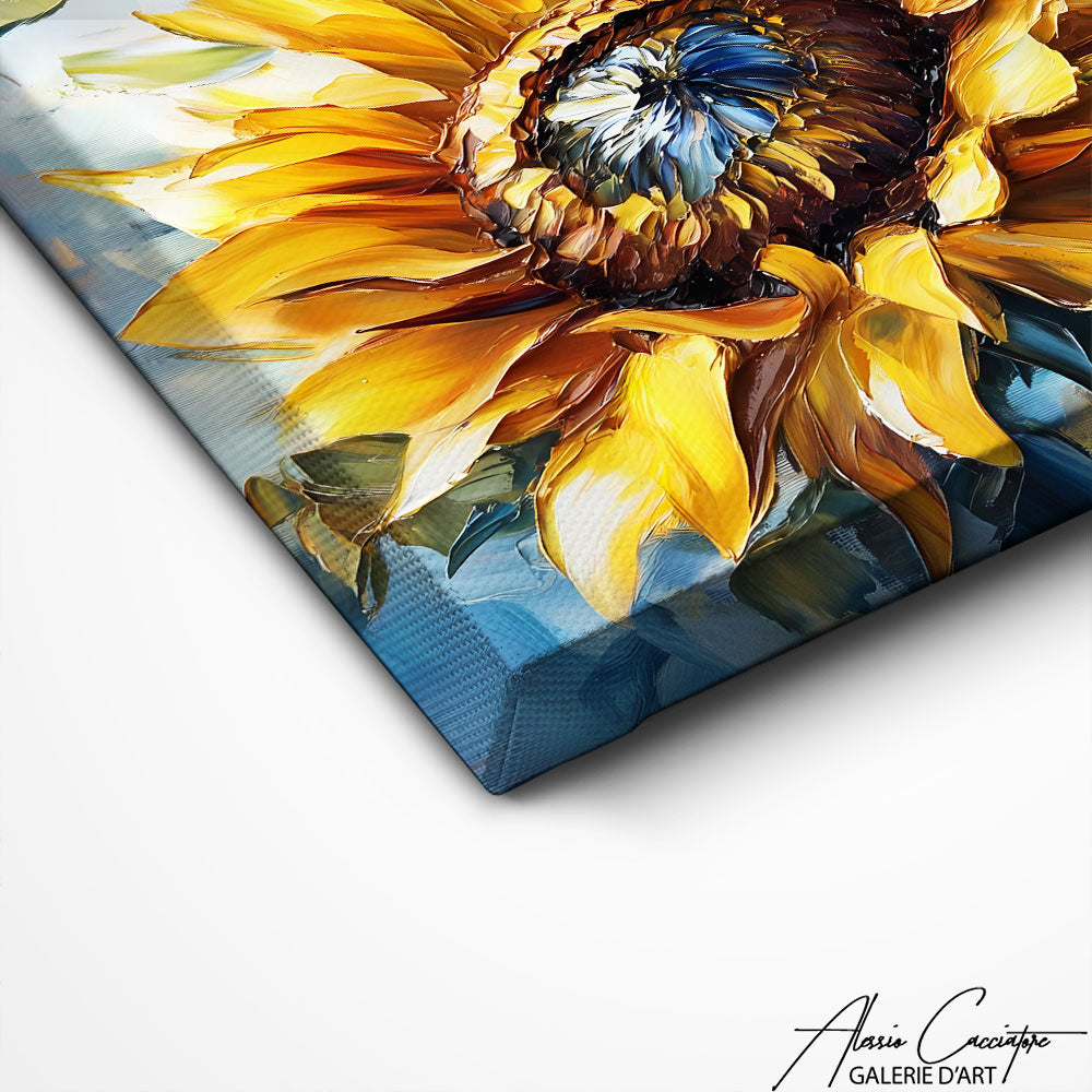 Notre tableau tournesol contemporain révèle toute la beauté de la nature à travers un style artistique raffiné et moderne. Idéal pour apporter une touche de chaleur et d’élégance à votre intérieur, ce tableau attire immédiatement le regard.