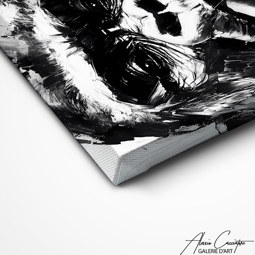 Le regard intense d’un gorille fumant un cigare crée une œuvre audacieuse au style noir et blanc puissant. Notre tableau joue sur le contraste pour offrir une présence animale forte et charismatique. Parfait pour une déco moderne avec du caractère, il apporte une touche à la fois sauvage et élégante. Une pièce qui intrigue, capte l'attention et renforce l'identité d’un espace.