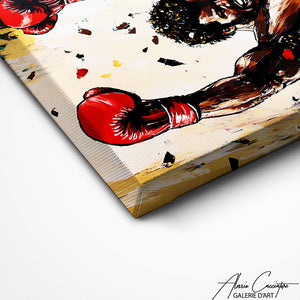 Notre tableau capture la puissance d’un boxeur levant les bras en signe de victoire, au cœur d’un style artistique expressif et dynamique. Les touches de couleurs éclatées autour du personnage renforcent l’intensité du moment. Une œuvre parfaite pour un intérieur sportif ou motivant, rappelant force, persévérance et détermination. Il devient instantanément une pièce centrale dans n’importe quelle pièce.