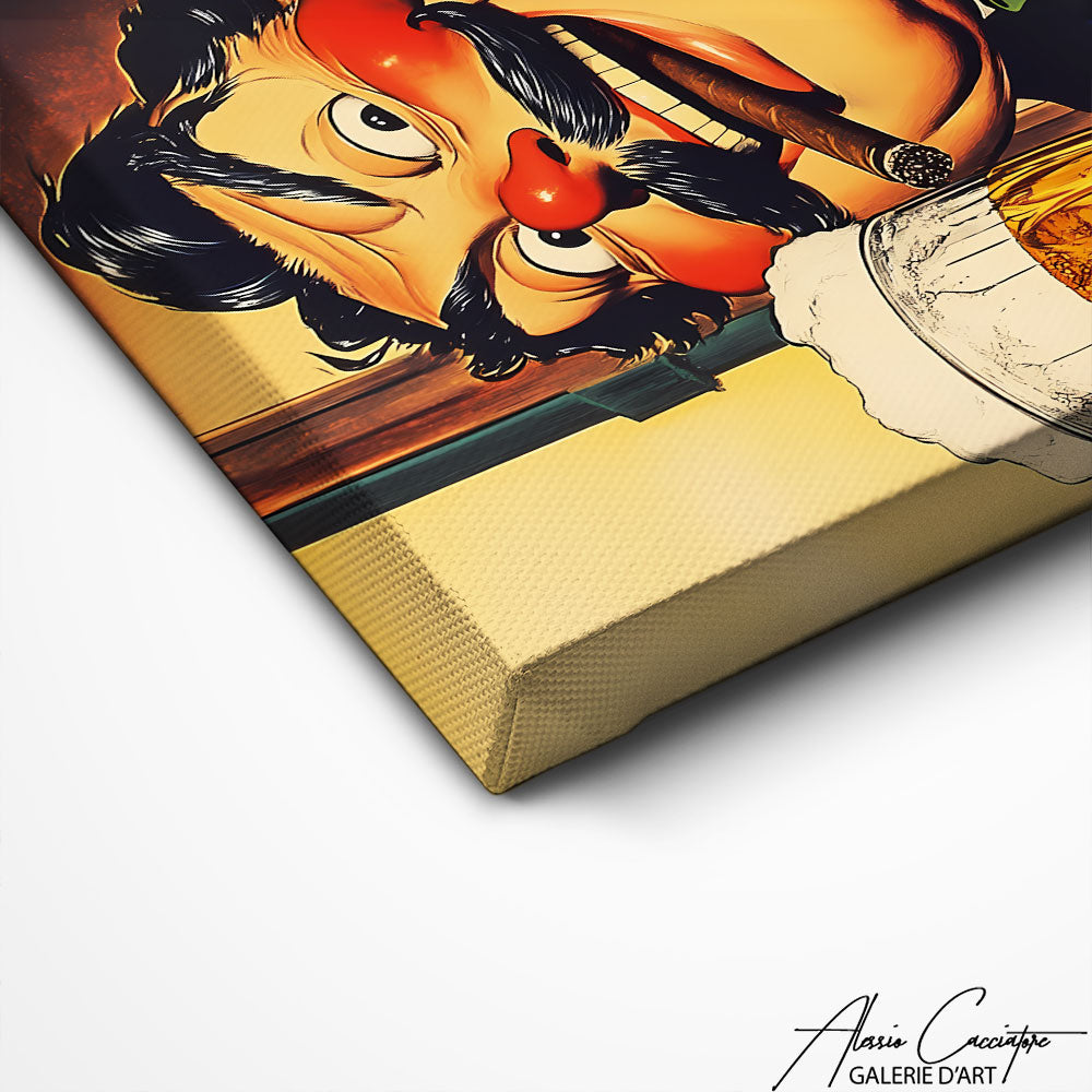 Notre tableau met en scène un personnage jovial levant une grande bière mousseuse, dans un style rétro chaleureux. Les couleurs intenses et l’expression malicieuse apportent une touche d’humour irrésistible à votre décor. Parfait pour une cuisine, un bar ou un espace convivial où l’on aime partager de bons moments. Une pièce décorative pleine de caractère qui attire immédiatement le regard.