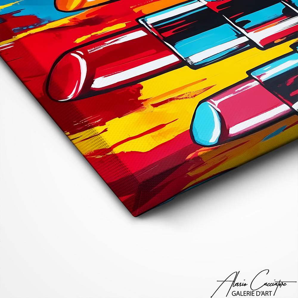 Notre tableau distingue trois rouges à lèvres représentés en gros plan, dressés comme des icônes modernes sur un fond coloré. Les formes brillantes et les tons intenses soulignent l’univers glamour et affirmé de la composition. Chaque détail attire le regard et évoque l’élégance, la mode et l’audace. Une pièce forte pour une décoration contemporaine et stylée.