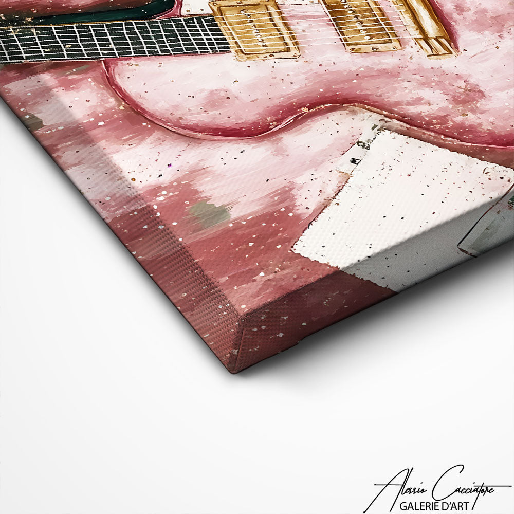 Avec sa guitare vintage rose et ses accessoires rétro, notre tableau instaure une ambiance artistique et chaleureuse. Les détails peints avec soin apportent une touche nostalgique qui s’intègre parfaitement dans une chambre, un bureau ou un studio créatif. Idéal pour enrichir un décor avec personnalité et douceur. Un tableau déco plein de charme et d’authenticité.
