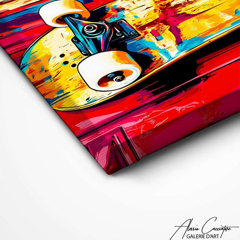 Notre tableau met en scène un skateboard stylisé avec un mélange de couleurs vibrantes et une esthétique street art affirmée. Il apporte instantanément une touche moderne et urbaine à votre décoration intérieure. Idéal pour une chambre, un salon ou un espace créatif, il reflète parfaitement l’esprit skate. Une pièce originale qui attire le regard et affirme votre style.