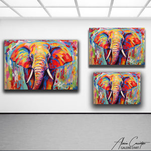 By combining contemporary aesthetics and timeless symbolism, this modern elephant painting embodies the transition from traditional to modern. Clean shapes and bold contrasts reflect artistic innovation.