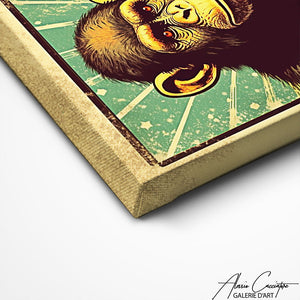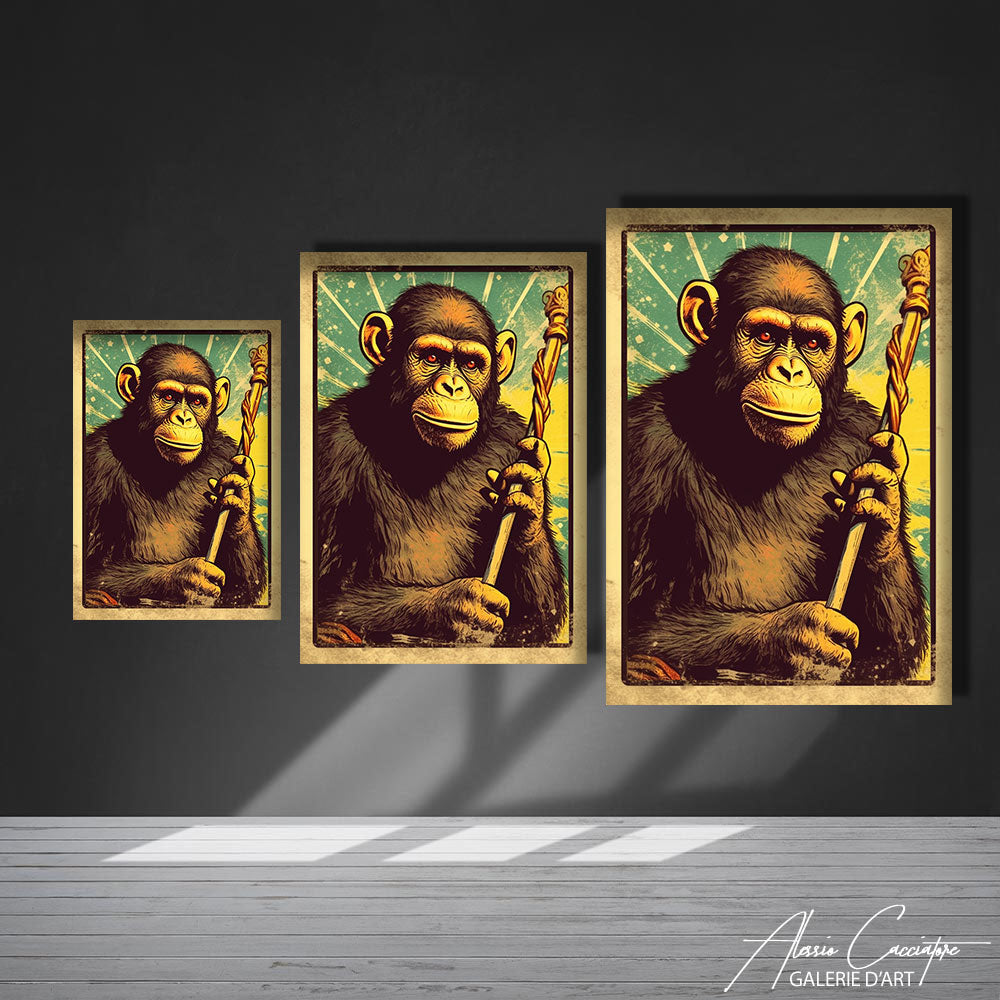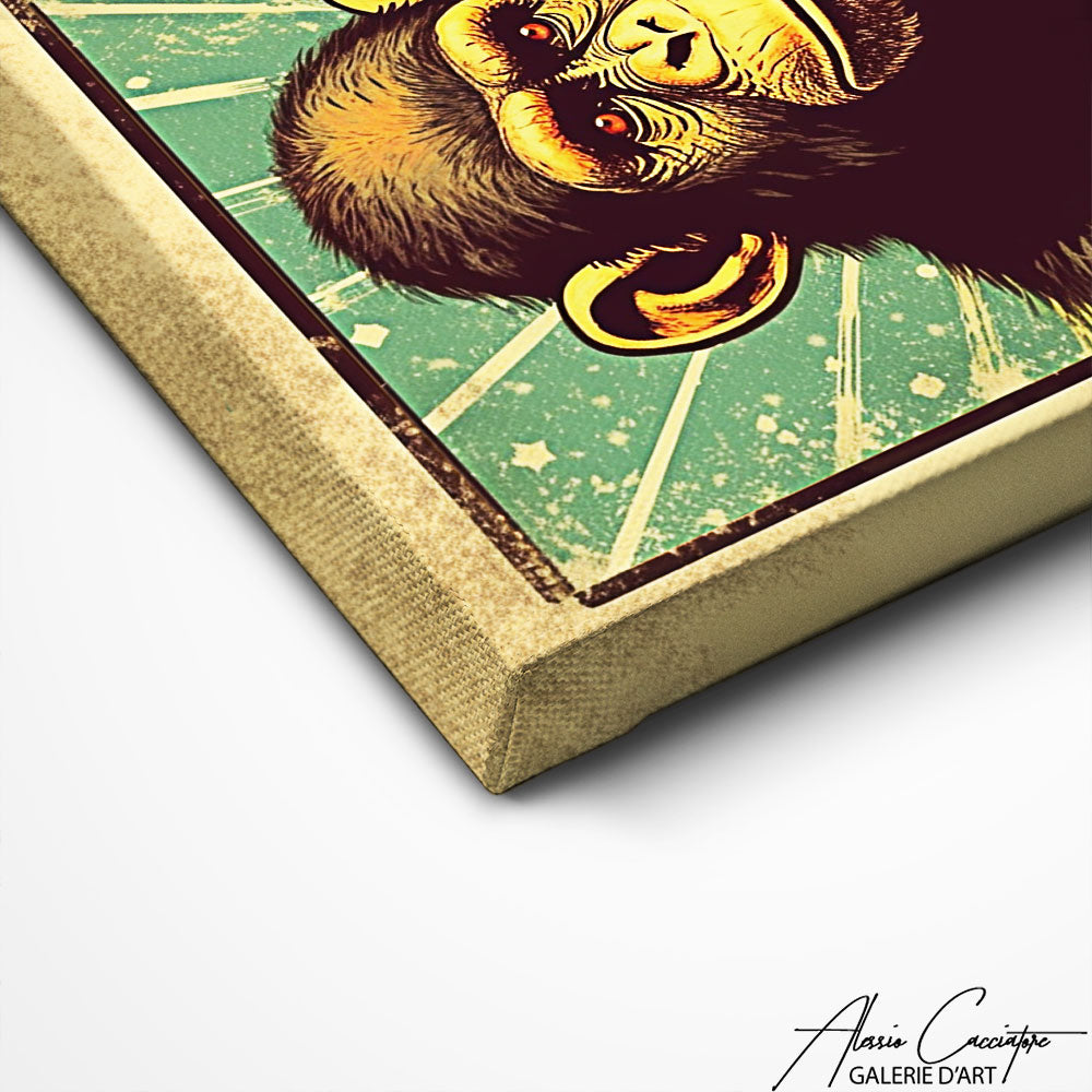 Nestled in the heart of a game card, the monkey intrigues and fascinates, recalling the duality between chance and destiny. This monkey on card painting is not only an ode to life strategy but also a real asset for the future buyer's interior.