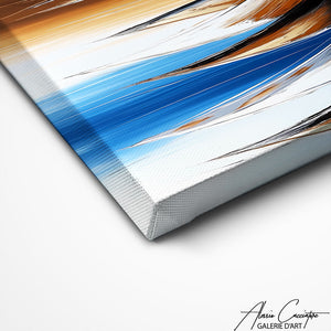Our contemporary sailboat painting stylizes navigation with elegant geometric shapes. Minimalist and refined, it blends perfectly with your Scandinavian furniture while adding a chic and timeless nautical touch.