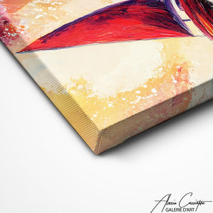 Our red sailboat painting defies a monumental wave in a striking scarlet glow. This visual power magnetizes the eye and injects that conquering energy perfect for boosting the ambiance of your office or masculine living room.