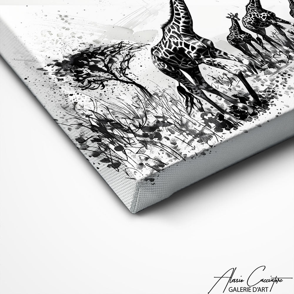 This black and white giraffe painting offers a minimalist and elegant representation of the giraffe. With its timeless style, it easily fits into any type of decoration, adding a touch of understated sophistication