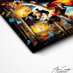 Our Argentine tango dancer painting reveals an abstract couple! This passionate work transforms your space into a sensual Argentine art gallery. The passion of tango is enhanced by modern and romantic abstraction. Argentine art that ignites!