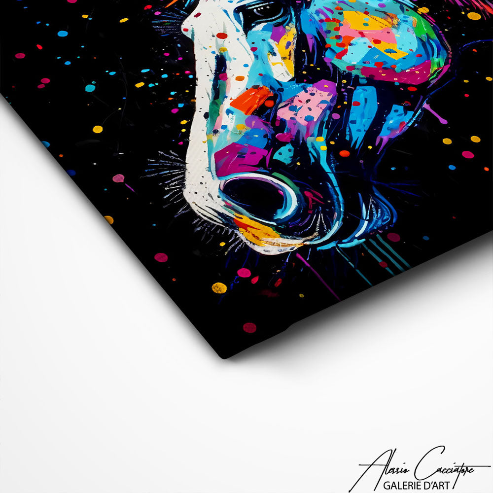 This designer horse painting combines modernity and elegance, with clean lines and stylized shapes that capture the majestic silhouette of the animal. Perfect for a contemporary interior, it brings a sophisticated and artistic touch, while symbolizing strength and freedom.