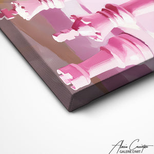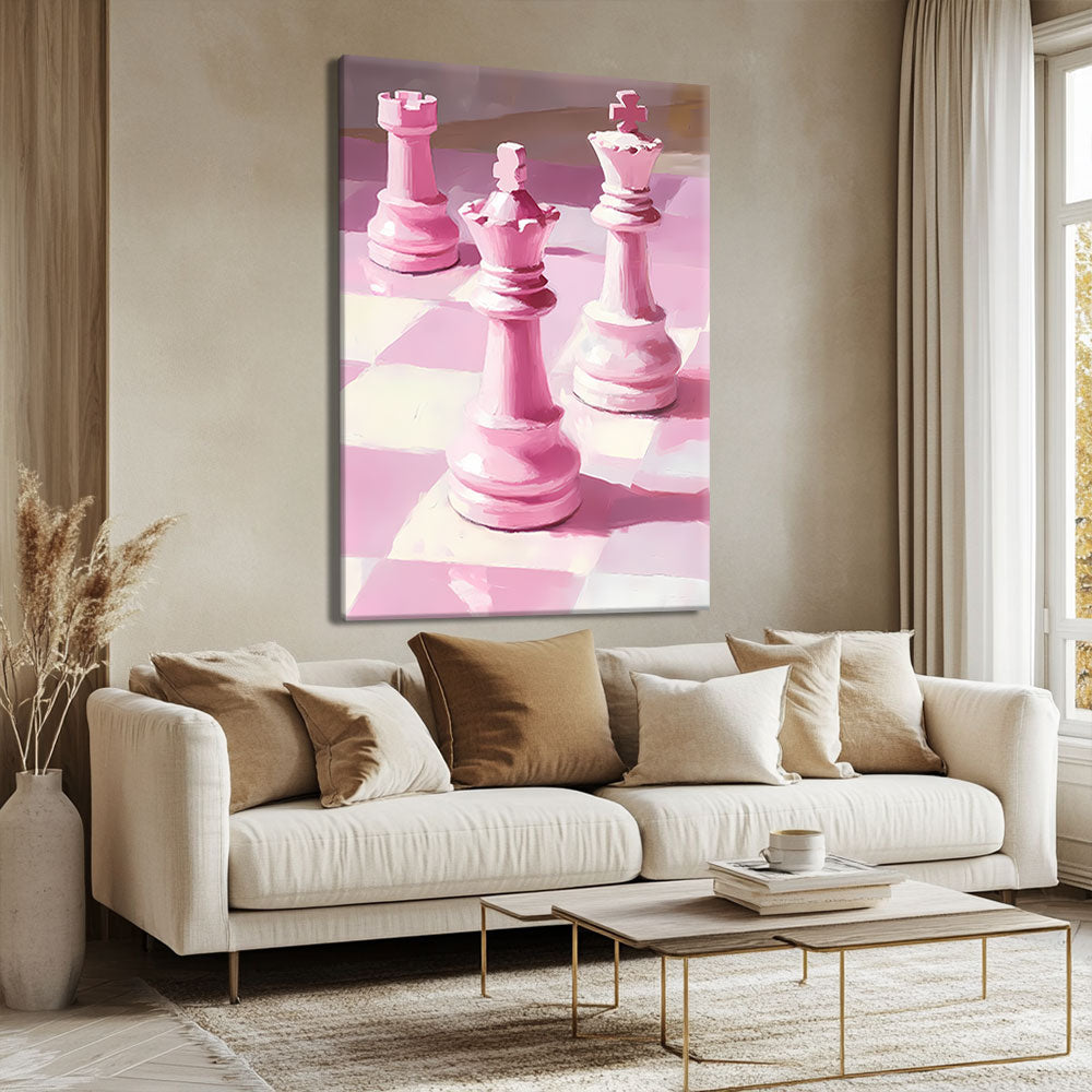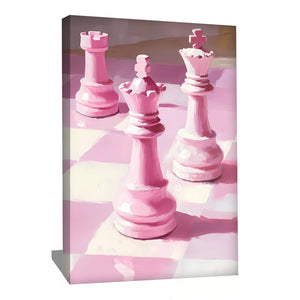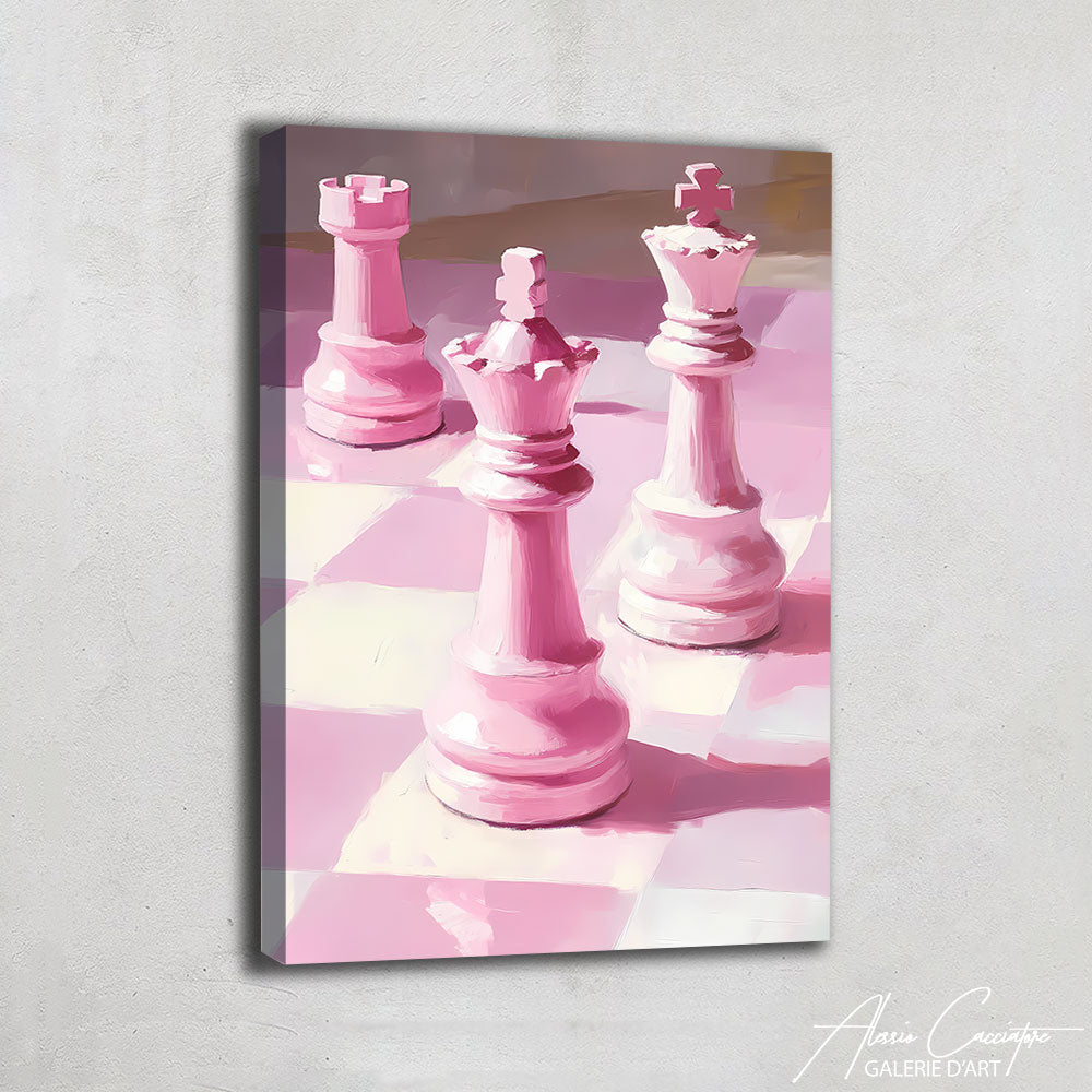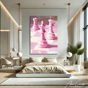 Our designer painting subtly blends the elegance of a chessboard with the delicacy of roses, in a graphic composition that's both structured and poetic. Perfect for a modern, refined, and symbolically rich decor. This painting combines strategy, beauty, and sophistication with originality.