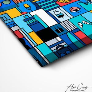 Our abstract design painting frees artistic expression from figurative constraints to create a pure and emotional visual experience. Shapes and colors interact in a sophisticated contemporary language. A work that stimulates personal interpretation while elegantly bringing depth and character to your space.