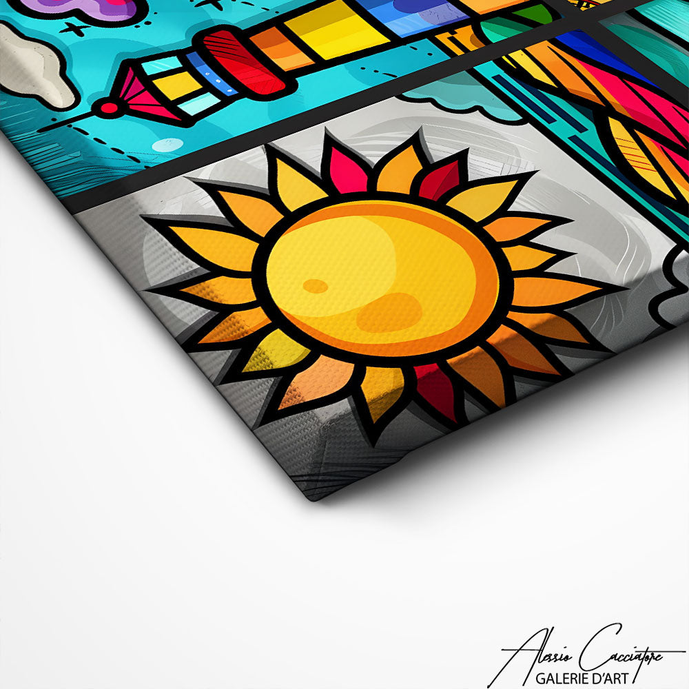 This pop art design painting revisits classic patterns with vibrant colors and stylized shapes. An ideal choice for lovers of modern and artistic decoration.