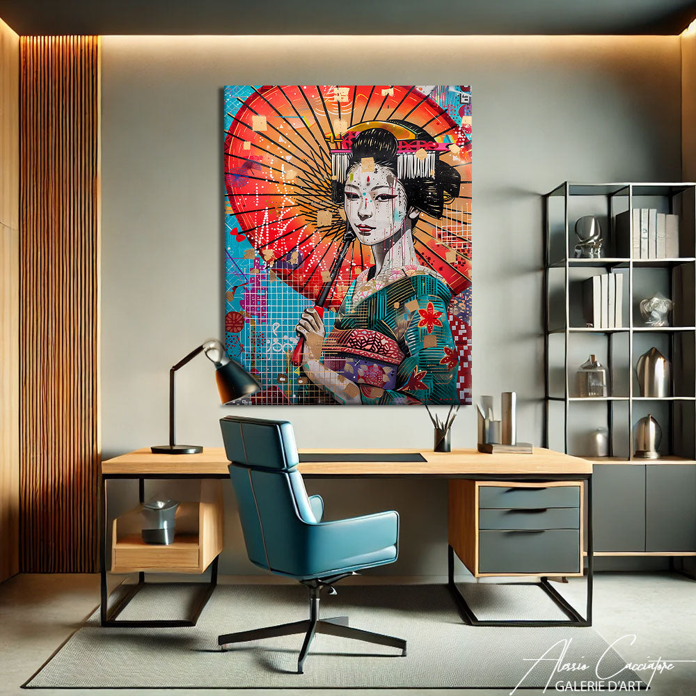 Our Japanese painting is an open window to traditional Japanese motifs beautifully interpreted with a modern artistic sense. A powerful decorative element for large spaces.