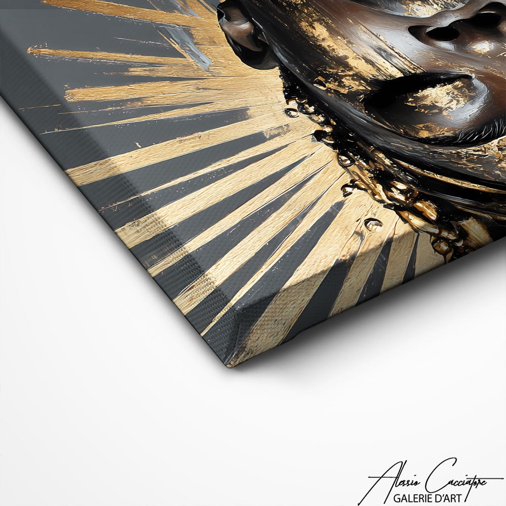 Our Golden Woman painting features a luxurious woman in black and gold. Elegant and sophisticated, it exudes glamour and prestige. A decorative piece that brightens your walls with refinement and modernity.