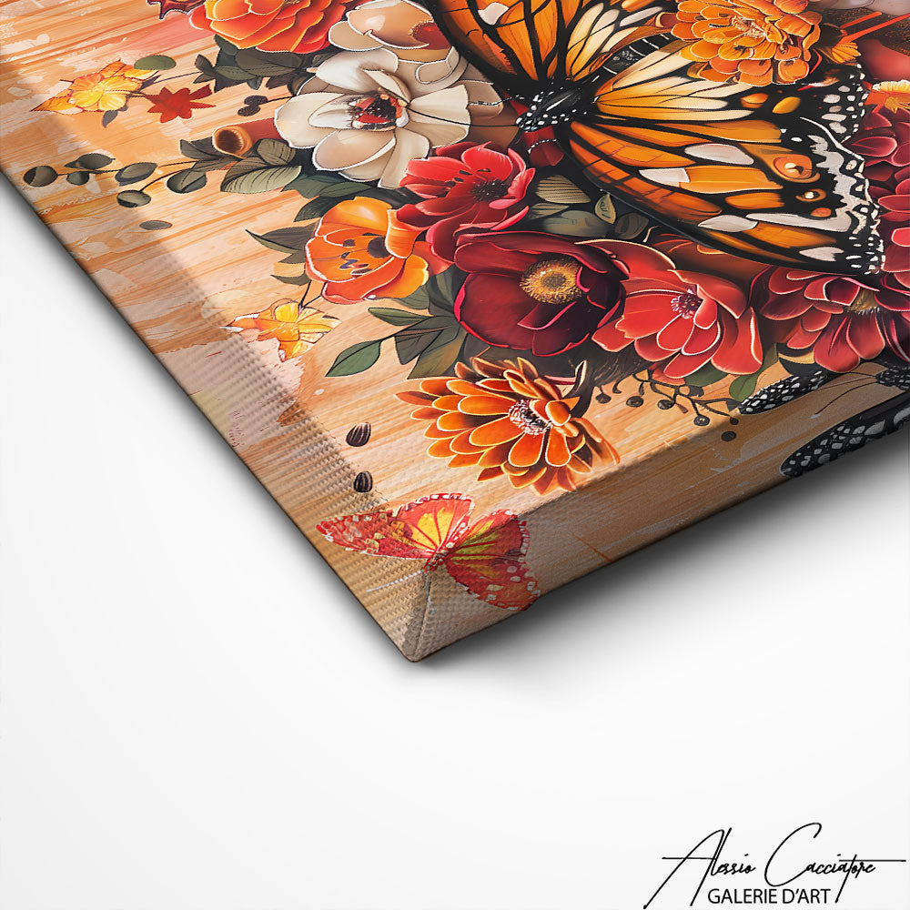 This butterfly woman painting combines delicacy and symbolism, representing a woman surrounded by butterflies, a symbol of transformation and freedom. The harmonious colors and subtle details bring a touch of poetry and elegance to your interior