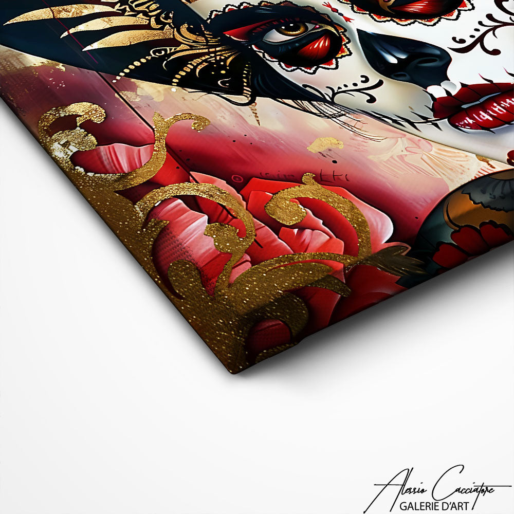 Our painting combines feminine beauty with the symbolism of the skull, creating a captivating work that combines strength and fragility. Ideal for adding an artistic and dramatic dimension to your space.