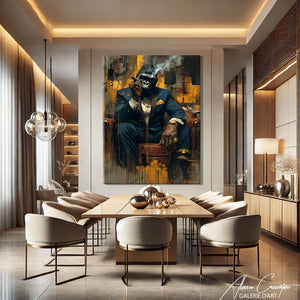 Our table The gorilla fascinates with its wild presence and bold graphic style. It embodies power and mystery in a contemporary setting. A strong choice for those who love pieces with character.