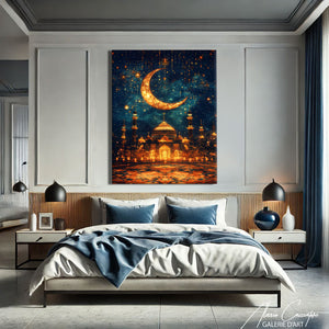 Our Islamic canvas print brings spiritual beauty and elegance. Traditional Arabic Islamic motifs create an atmosphere of serenity and connection. This canvas print allows everyone to beautify their space with meaningful spiritual art, without compromising on visual quality.
