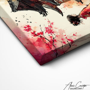 Our Japanese watercolor painting invites you to escape with its world inspired by traditional Asia, combining poetic nature and subtle symbols. A distinctive choice for a Zen and stylish decor.