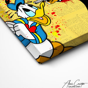 Our Pulp Fiction painting is a true statement of the boldness and vivacity of pop art, featuring Donald Duck alongside John Travolta and Samuel L Jackson.