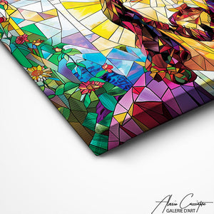 Our canvases are printed using a special UV-resistant ink. This ink protects colors over the years to maintain the contrast of the paint.