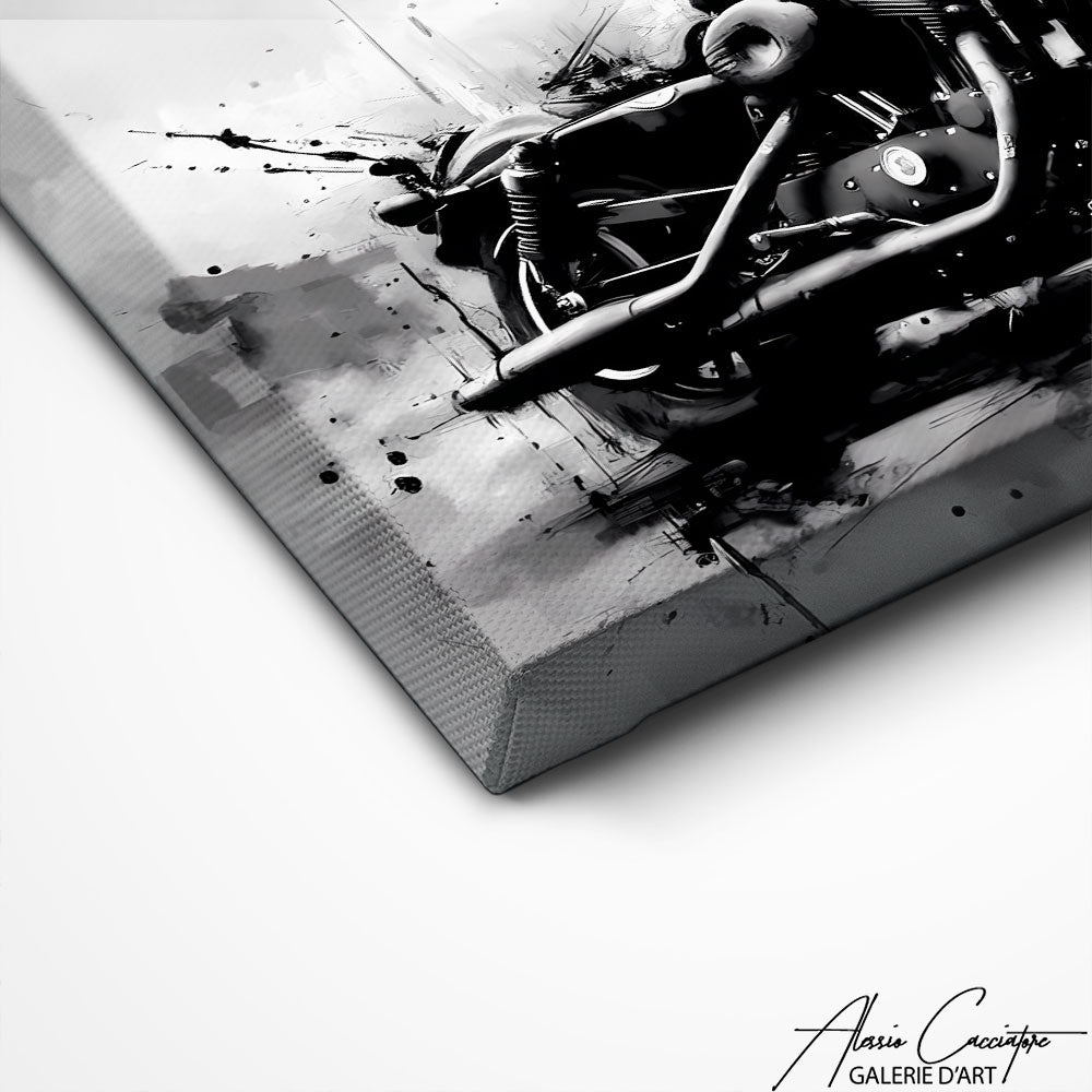 Notre tableau moto noir et blanc présente une Triumph élégante dans un style chic et minimaliste. Sobre et raffiné, il allie design et intemporalité. Une pièce parfaite pour un bureau ou un salon moderne.