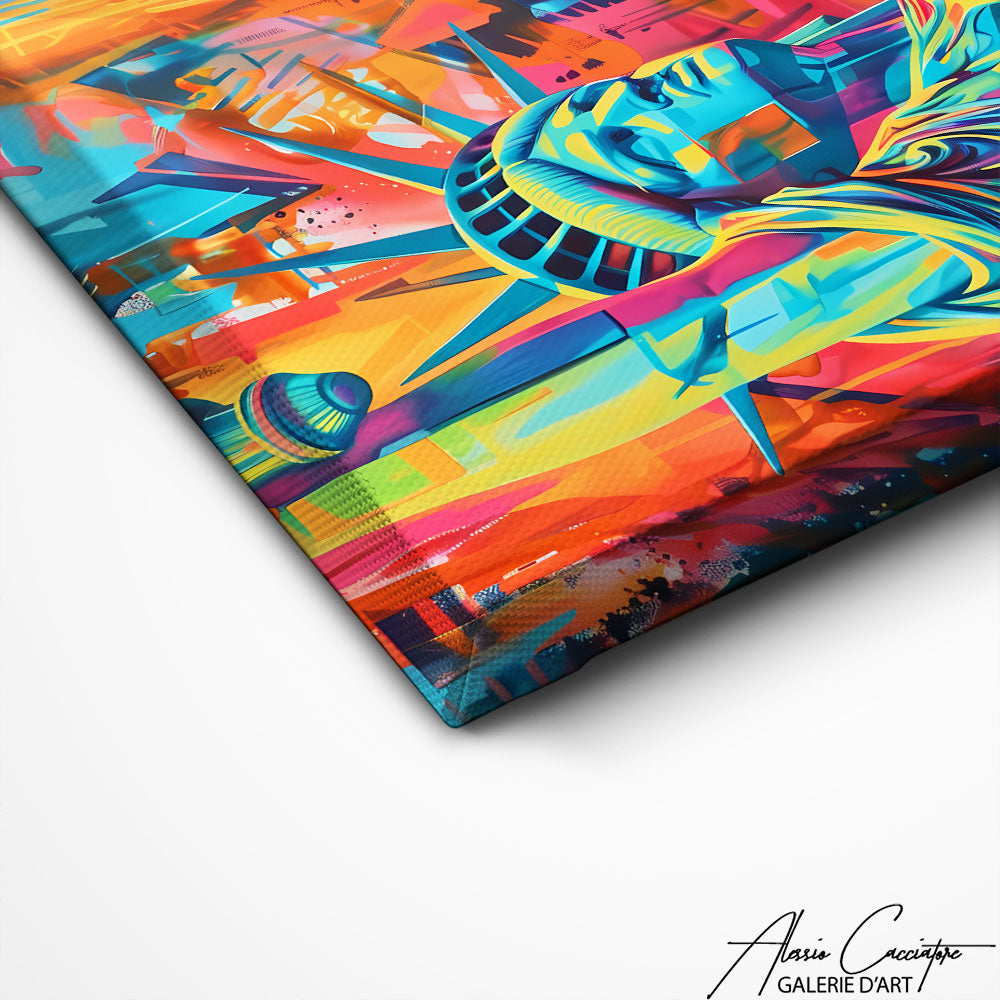 Our painting features the majestic Statue of Liberty against the backdrop of the energy of New York. Ideal for a modern and cosmopolitan decoration, it brings an urban and symbolic touch to your interior.