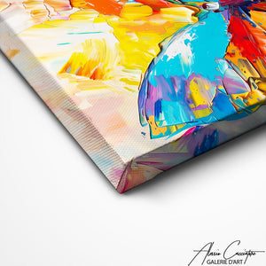 Our canvases are printed using a special UV-resistant ink. This ink protects colors over the years to maintain the contrast of the paint.