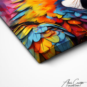 Our bird painting is an invitation to dream and escape, a visual journey where the beauty of this parrot blends into the decor of your daily life. This work is a must-have for those looking to add a dimension of tranquility and natural inspiration to their walls.