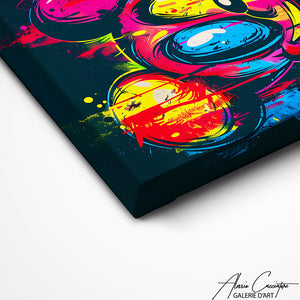 Our pop art painting features Mickey Mouse in an explosive street art universe, blending graffiti, bright colors, and quirky graphics. The childhood icon is revisited with a bold and modern twist, blending nostalgia and visual provocation. Ideal for a fun, urban decor full of personality. This painting catches the eye and shakes up the rules with style.