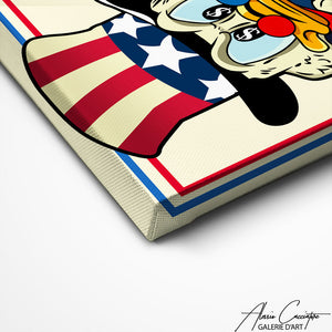 Our Donald Pop Art painting combines bold shapes and vibrant colors to create a striking work. It's a true celebration of style and audacity.