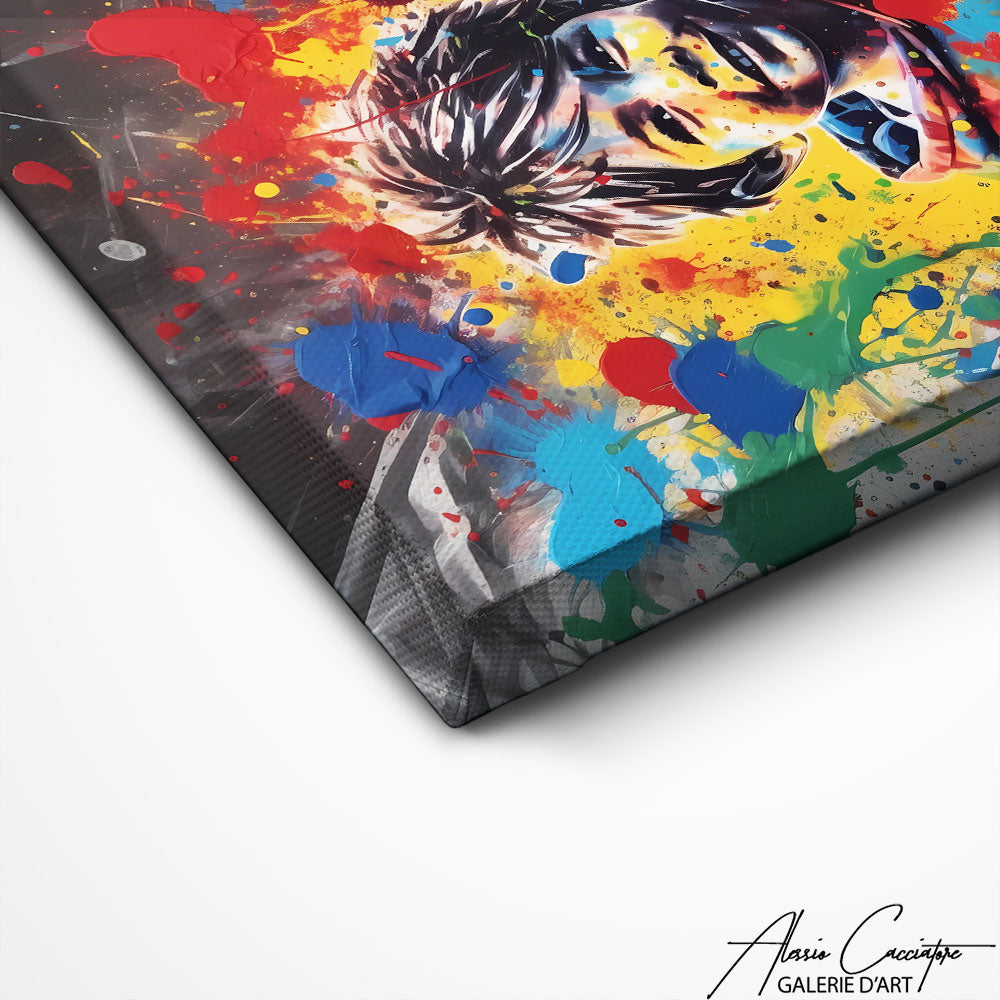 A true explosion of colors, this work illustrates the quintessence of street art. Our painting captures and transmits the energy and spontaneity that characterize street art.