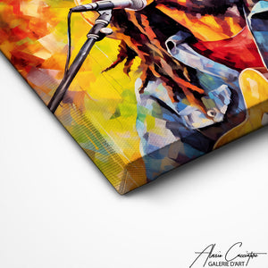 Our Bob Marley canvas print is a vibrant celebration of the reggae legend. With its rich, bright hues, this artwork captures the spirit and soul of Marley, bringing a touch of positivity and warmth to any interior.