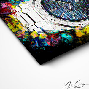 Discover the dynamism and fluidity of this Audemars Piguet painting that the artist has crafted with an elegant finesse that transcends the limits of the canvas.